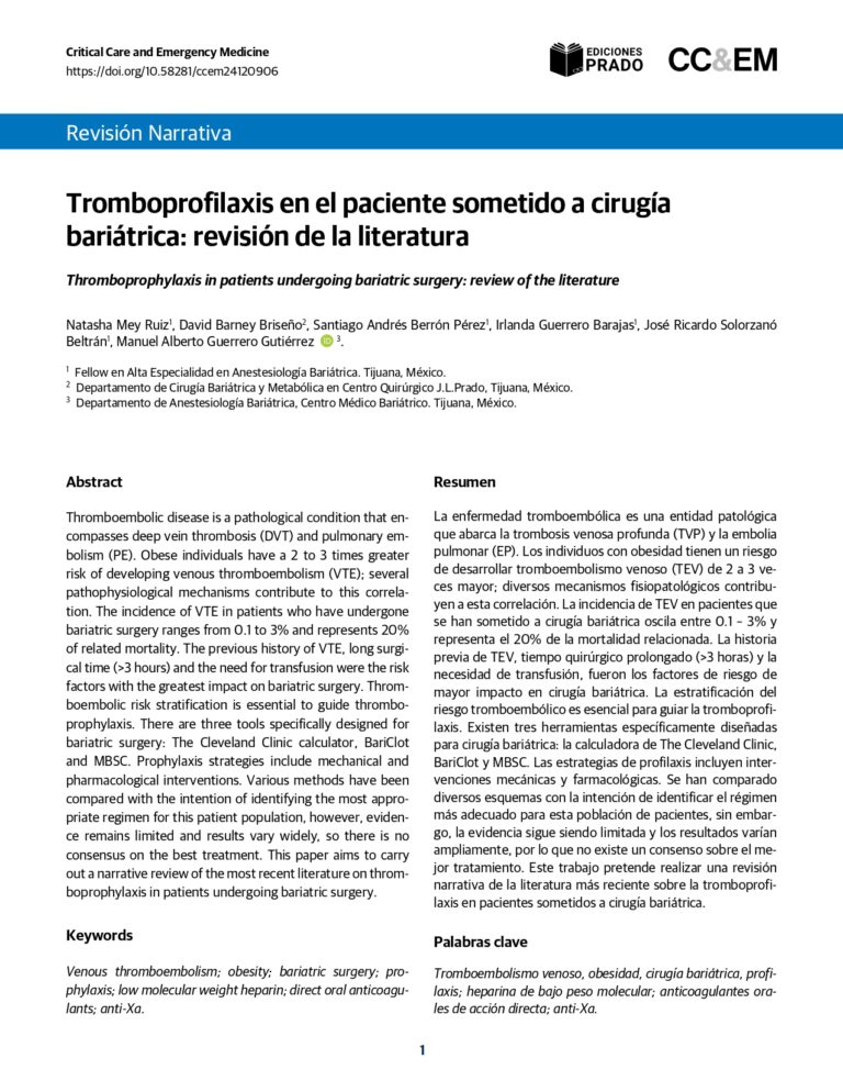 Asimismo, se abordan aspectos de farmacología y seguridad con artículos sobre la monodosis de carbón activado en pacientes intoxicados, las consideraciones perioperatorias de los análogos GLP-1 y la tromboprofilaxis en cirugía bariátrica, todos de gran relevancia clínica.