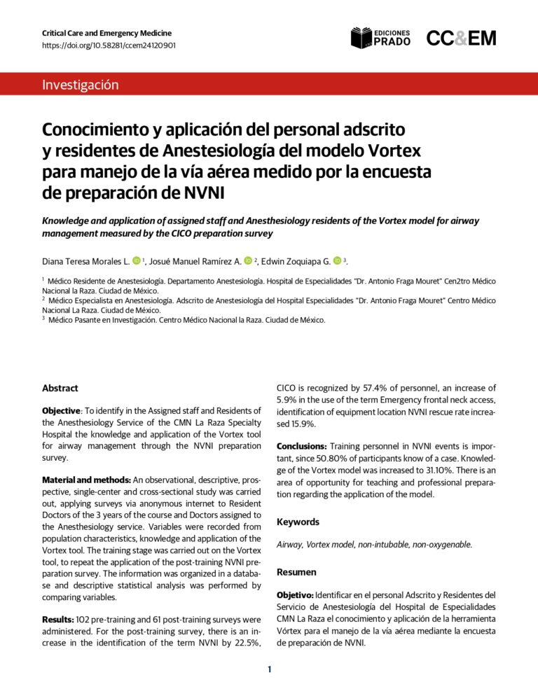Este volumen también incluye un estudio experimental sobre la eficacia de un gel combinado de betametasona, lidocaína y tetracaína en la reducción de complicaciones postoperatorias de la vía aérea, así como una evaluación del conocimiento y aplicación del modelo Vortex por anestesiólogos y residentes, ofreciendo evidencia para fortalecer la formación médica.